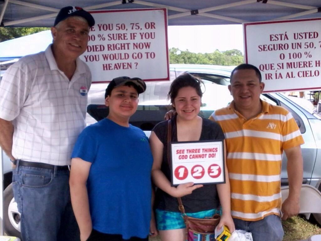 Randy Thomas the newest missionary with SOS and 3 of the people he led to The Lord at the Farmers Market in Plant City, Fl. God has answered prayer for a team of workers for this Wednesday Event. More workers are needed. Especially Spanish speaking.