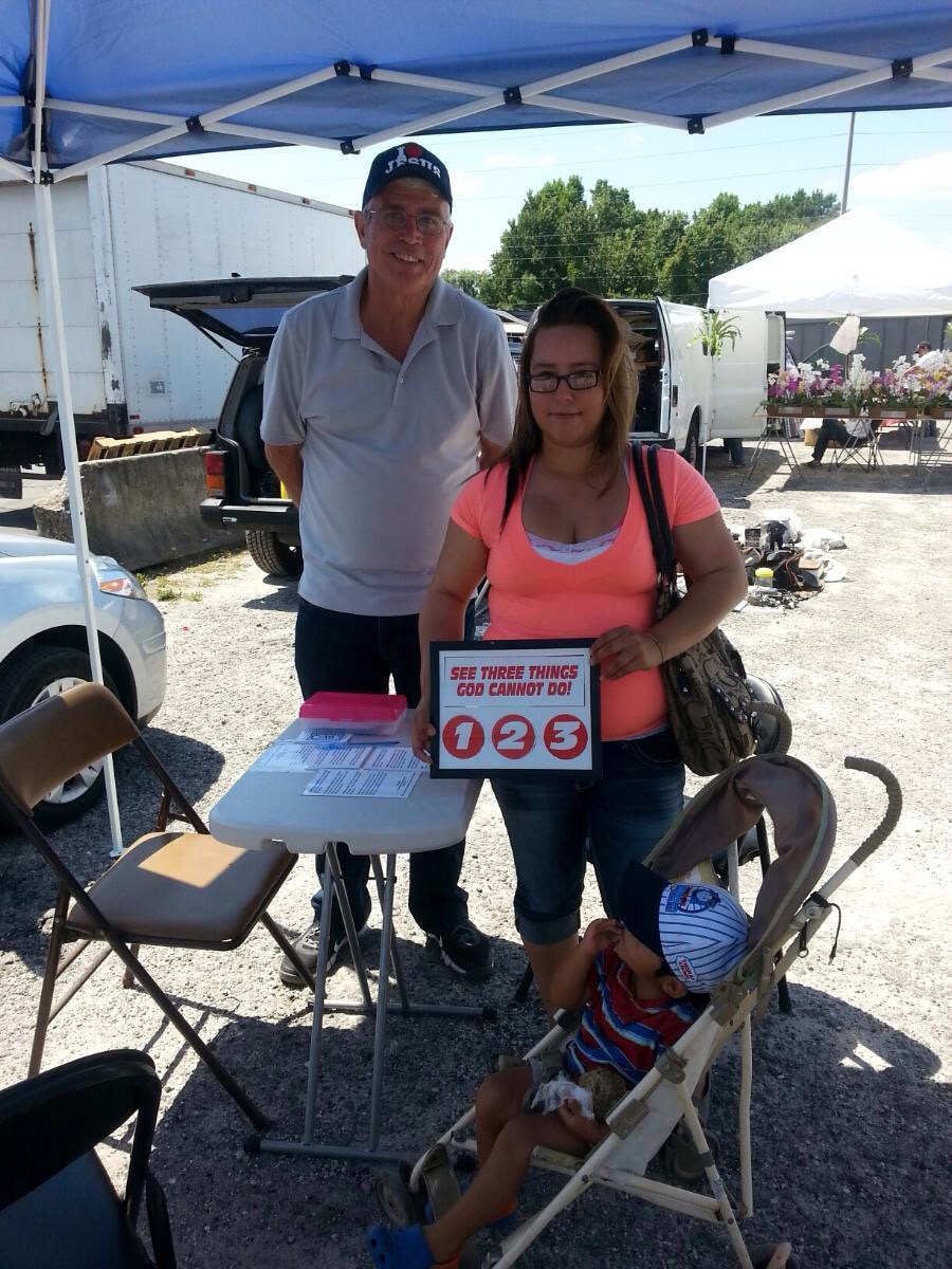January 13, 2015SOS Events attracts people to our booth at an event with displays that have the words, “3 THINGS GOD CANNOT DO”. The bible verses are covered so the answers can not be seen. The the door is lifted and the scripture is revealed.