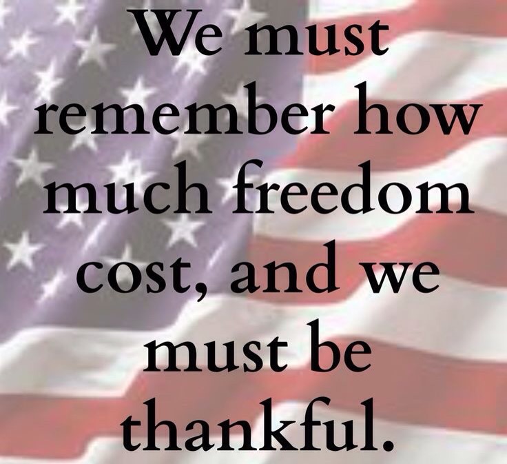 We have the great privilege of living in America where we are still free to worship, vote for our leaders and have freedom of speech. This weekend take time to think about the brave men and women who have fought for our country and if you know a veteran or someone who is in the military now say thanks for your service.