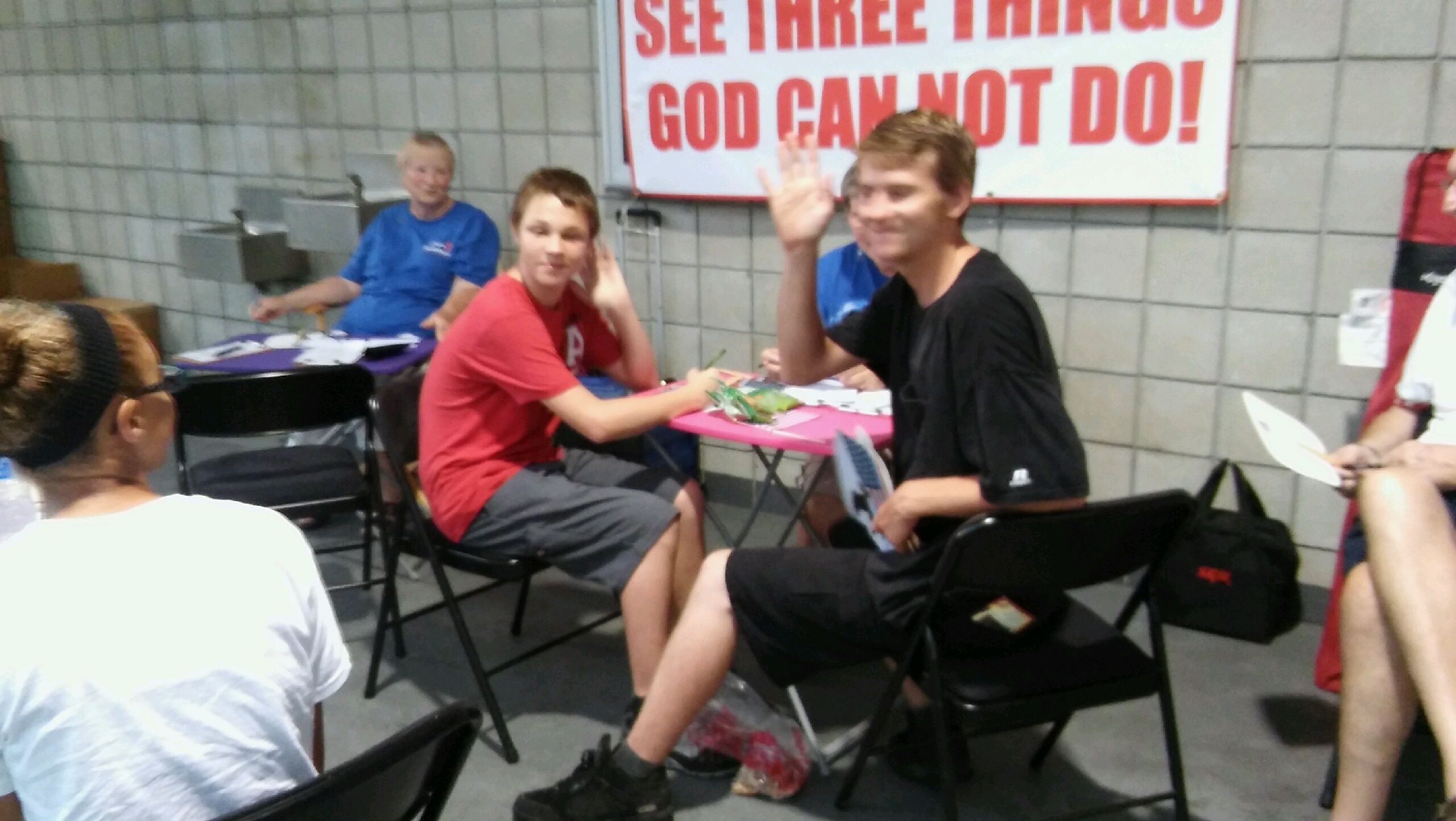 There were terrible thunder storms just as the fireworks were about to begin but God blessed with 8 souls including these 2 teen age young men. SOS Events is so pleased to have dedicated workers who give up their family time to witness for the Lord.