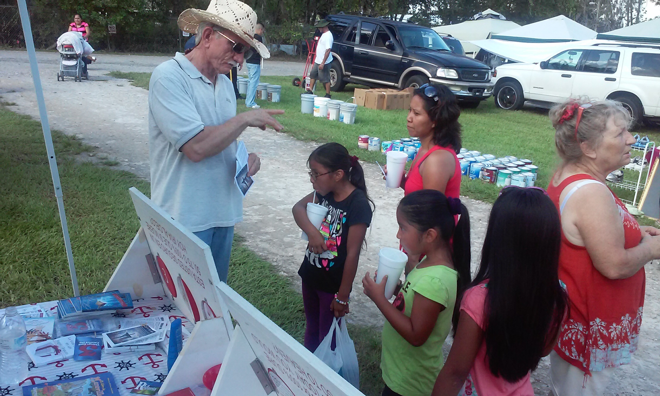 Typical day at the Flea Market in Plant City, FL. Every Wednesday the team from SOS Events is at the flea market. God always blesses us with many souls. Yesterday, after just a few hours the rain came down in buckets but before that there were 13 people who had accepted Christ.