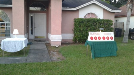 This is a photo of Diana’s front lawn at her home on Halloween. She set up for Trick or Treat and she had 25 decisions for Christ before the evening was done. 10 adults were saved who came with their children, 13 children were saved and 2 children received assurance of their salvation. It is amazing what God will do with one person who is willing to step out of their comfort zone and witness for the Lord. One night and the results were more than most churches do in a year.