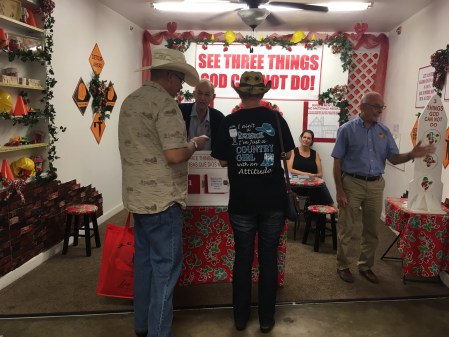 SOS Events Ministry has many wonderful volunteers who work in the booth at events and we are thankful for everyone. This week we were extremely blessed to have two retired Pastors work in our booth, both for the first time. Jay, 85 years old, talking to two people at the display board and David, in his 70’s, witnessing from the smaller display. Cynthia, mother of 5 and not a senior citizen, is at the table. Jay and David loved working with SOS Events as it gives them opportunity to do what they love best, telling others about Jesus. If you are retired or know someone who is and wants to witness in a non confrontational way for a few hours when needed, SOS Events is the perfect place for you.
