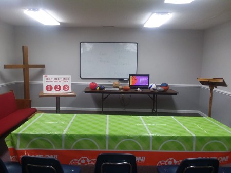 SOS board being used in VBS last night at County Line.. Yes this method of sharing Jesus can be used anywhere. Our focus was Love Jesus Love people and Share the Gospel. Thanks Bro. Fred for the 3 Things God Cannot Do bases and kick ball the little ones had a blast!!! Pray for us as we continue this week sharing Christ.