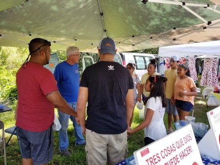 Randy Thomas (in the blue shirt) is a faithful SOS Events missionary, a pastor of a church in Lakeland, FL, a husband, father and grandfather. In this photo from a resent Wednesday Morning Flea Market, Randy is witnessing with other SOS Events team members to a large family. Every Wednesday, this Team is at the Flea Market where many people are saved each week. Today is Wednesday and we ask your prayers for many people to accept Jesus as their Savior, today.