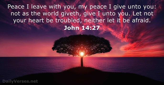 Today’s Bible verse speaks for itself. God has given us peace if we trust in Him through our Lord, Jesus.