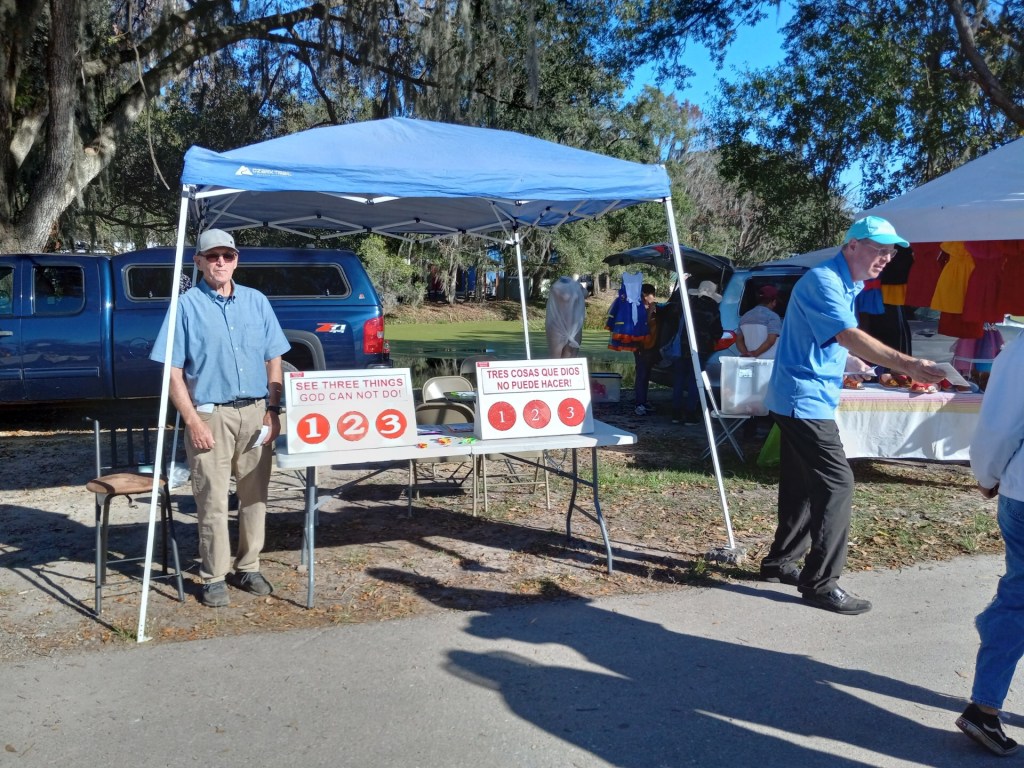 In this New Year many more volunteers are needed to go to events. SOS Events provides training to teach people how to present the gospel using the “3 Things God Can Not Do”.