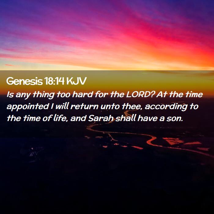 Is anything to hard for God? No. The story of Sarah should give us hope and assurance when we are going through things in our lives that seem impossible. Nothing is impossible with God.