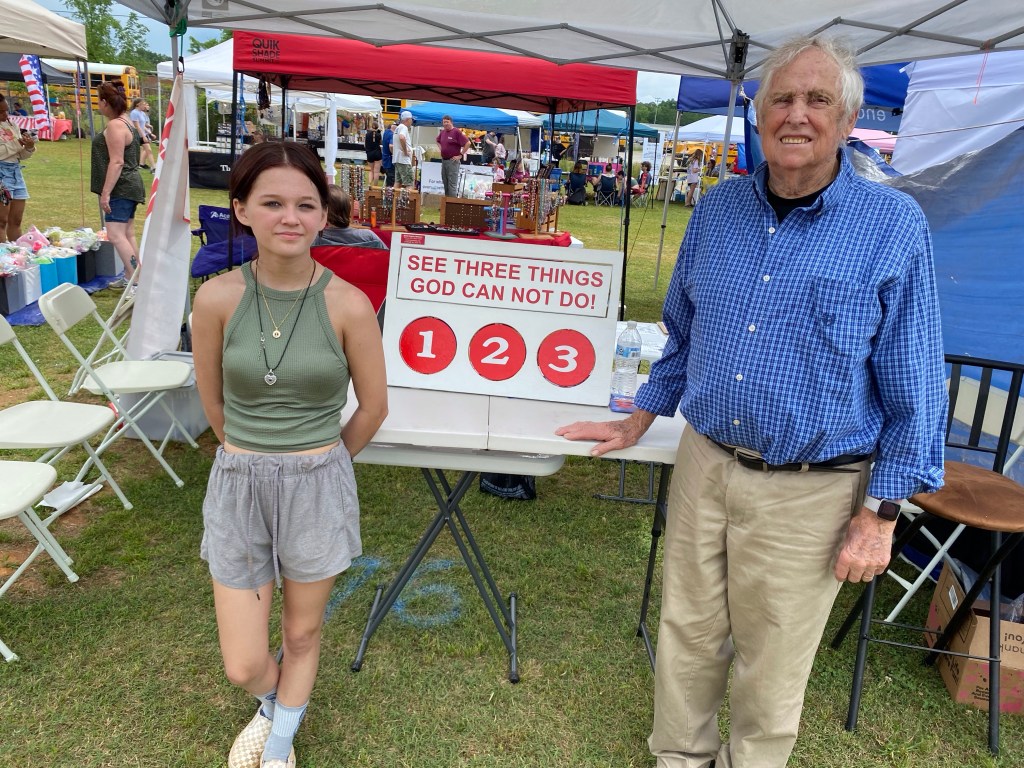 Walter Berry is shown in a picture of the Moulton, AL Strawberry Festival. He was trained by SOS in Florida and works with North Alabama SOS.