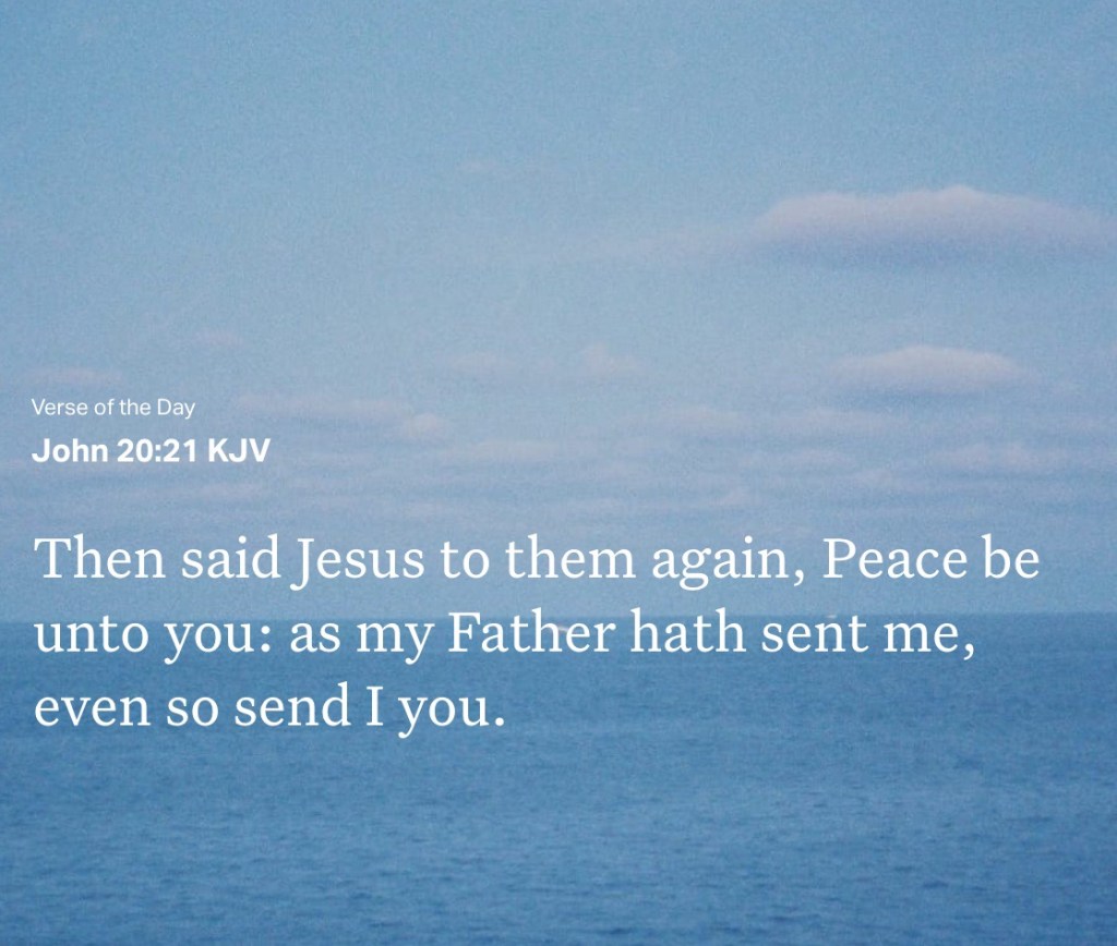 This verse in John is Jesus speaking to His disciples after His resurrection. First He tells them Peace! He is with them.