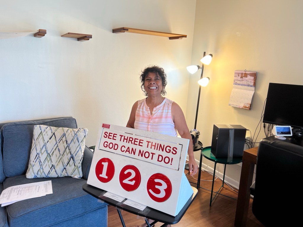 God blesses SOS Events with many volunteers. It is always a blessing to be able to train new people to use the “3 Things God Can Not Do”.