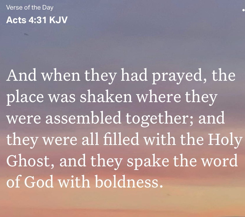 And when they had prayed, the place was shaken where they were assembled together; and they were all filled with the Holy Ghost, and they spake the word of God with boldness. Acts 4:31