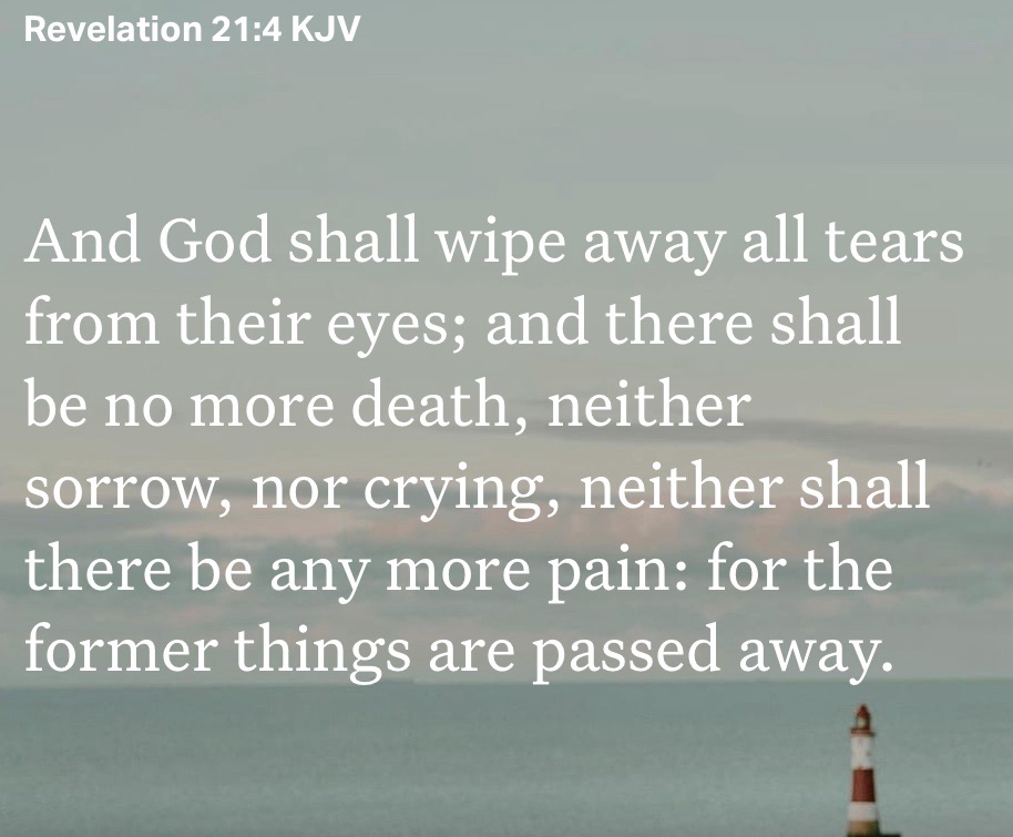 We as Christians should look ahead with joy and expectation, the day when we see no more tears, death, sorrow, crying and pain all passed away.