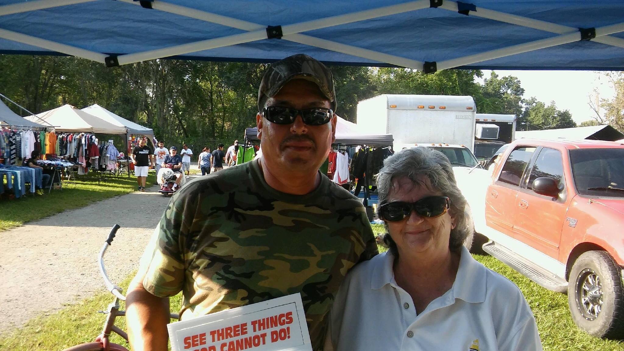 Alice with Lionel, one of the fifteen souls that made a decision to follow Jesus at the Plant City Flea Market this week. Many churches have prayer meeting on Wednesday but the pews are empty and no people come to the Lord. On Wednesday mornings SOS Events staff and volunteers are faithful at this Flea Market and salvations are recorded weekly.