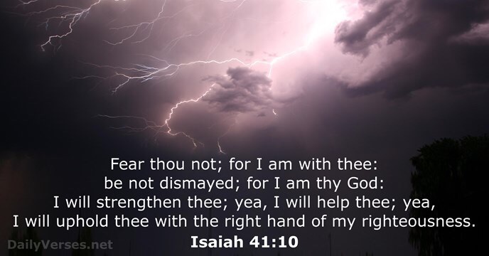 Isaiah 41:10 – Fear thou not; for I am with thee: be not dismayed; for I am thy God: I will strengthen thee; yea, I will help thee; yea, I will uphold thee with the right hand of my righteousness.