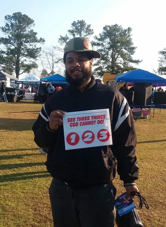 We were able to speak to 269 people at the 3 Things God Can Not Do board and gave out 300 tracts. A mighty move of the Holy Spirit fell under the ministry tent and 9 people made the decision to surrender their lives to Jesus Christ as their Lord and Savior. Oh how the Angels are rejoicing over these precious souls saved.