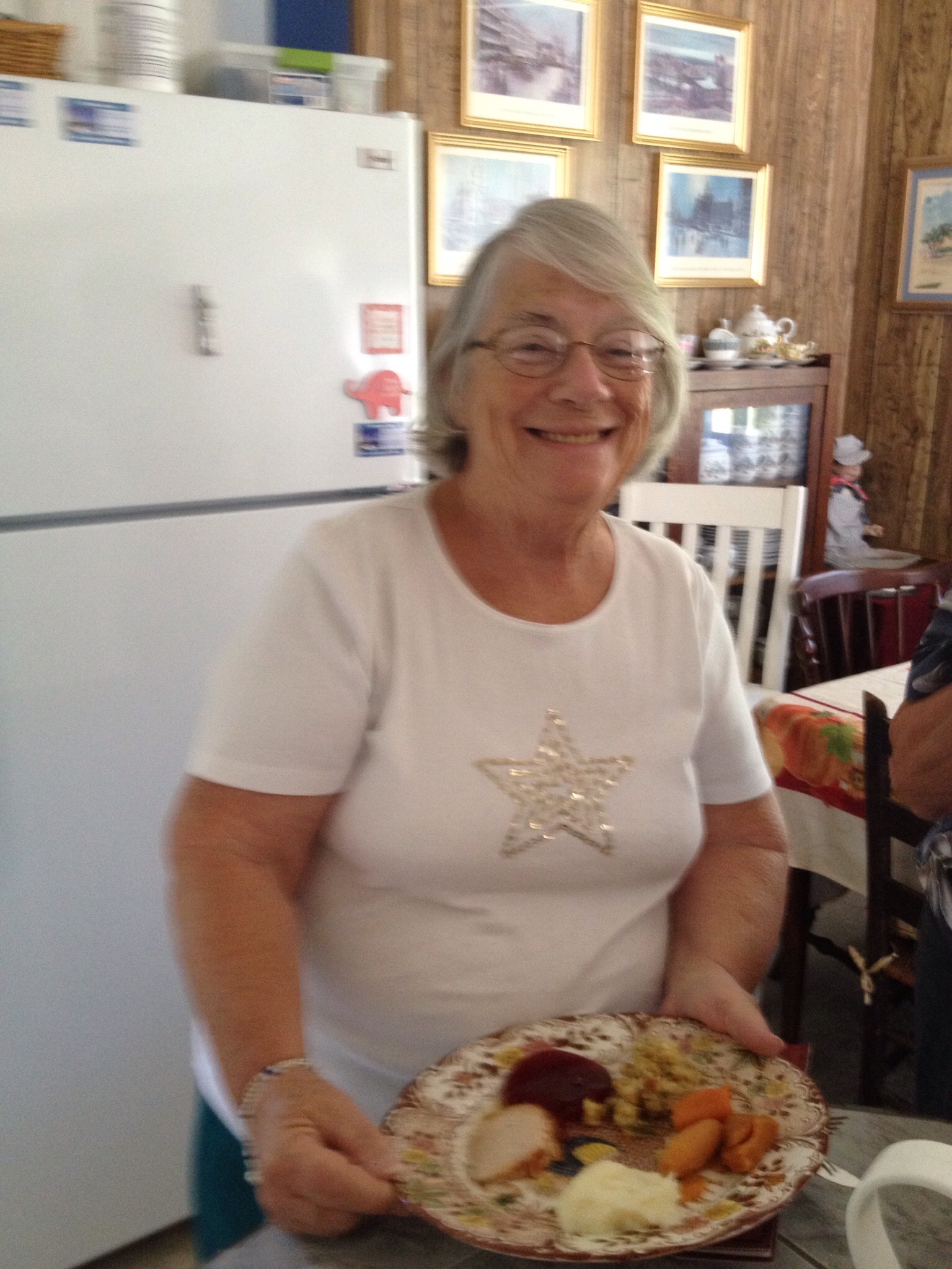 I like to call her one of the 3 Musketeers because she always comes with two of her friends, Caroline and Sarah to work. These 3 ladies are amazing. In the summer when Senior Servants do not meet because of the heat and many go away for the summer, these ladies insist on coming and working anyway. She has been a blessing to SOS Events.